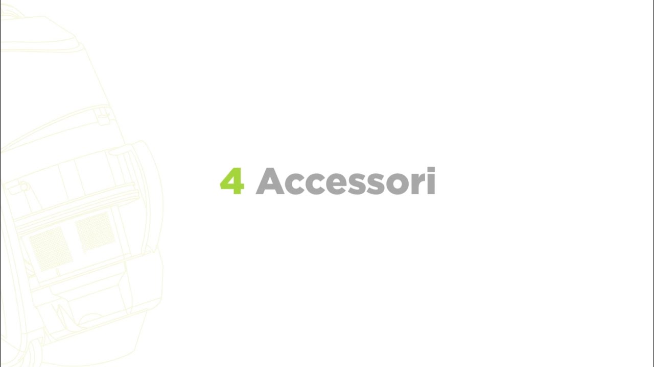 La manilla vertical permite mover Unico en cualquier dirección sin dificultad y sin inclinarse. Se puede colocar en la manilla un porta accesorios especial para tener siempre los accesorios a mano.
